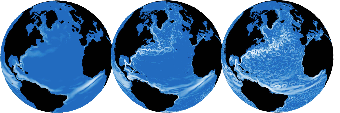 C-Streams will also interrogate two custom configurations of the MIT general circulation model to understand how physical processes alter the Gulf Stream nutrient and carbon streams, and then alter the downstream nutrient and carbon distributions. These will include a global model with higher resolution Gulf Stream and North Atlantic region, and a biogeochemical variant of the ECCOv4 state estimate that is both physically-consistent and observationally-constrained. Experiments will look at the effects of wind-stress and buoyancy forcing (associated with different weather regimes), as well as additional surface heating, on gyre/overturning circulation strength, and their effect on the transports and pathways of volume, nutrients and carbon for the Gulf Stream along the western boundary. We’ll then assess how these vary with changes in the extent of diapycnal mixing and isopycnal eddy exchanges.