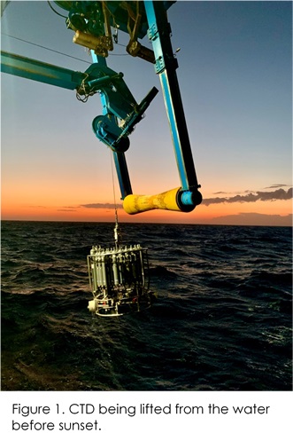 Thihs is particularly exciting for the scientists on board, knowing that we have an additional accuracy and reliance in the data we are producing as part of the Global Ocean Ship-Based Hydrographic Investigations Program. When carrying out our preliminary data quality control, we are seeing profiles that give much smoother patterns than have been previously observed, when the heave compensator has not been active. This lends us to quite an exciting time as we are all working hard to produce the highest quality of oceanographic and climate data which will be used by scientists all over the world and by future generations of Oceanographers that will follow us!