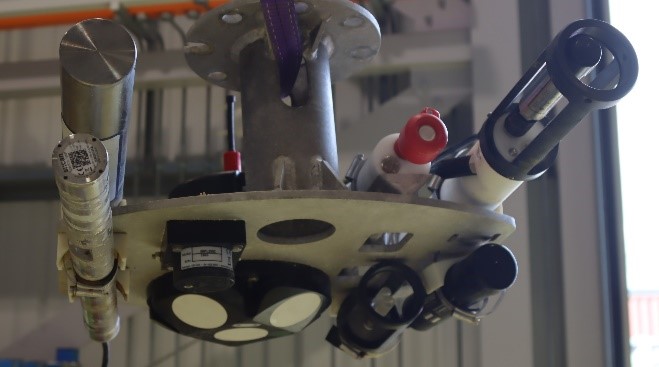The payload is remotely lowered through the hull of the USV after launch. Other sensors can be added to the payload, according to the needs of the deployment, subject to space and power requirements.