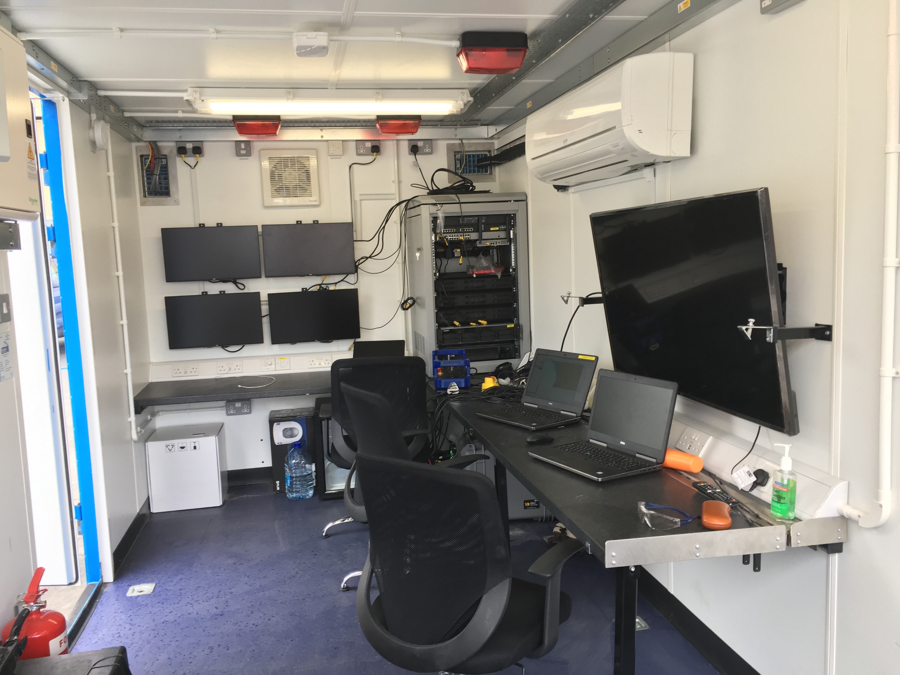 C-Worker 4 autonomous surface vessel can be operated either in fully autonomous mode, when she follows a pre-programmed mission profile, or as a remotely operated vessel where she is controlled either from the Operations Container, shown above, or from a support vessel. The support vessel requires a small cabin (as shown in the photograph). Electrical power is desirable but not essential as the communications equipment can operate from battery power. The customisable payloads, described below, can be exchanged, on shore, in about 2 hours. The USV can be launched and recovered from a beach, slipway or crane.