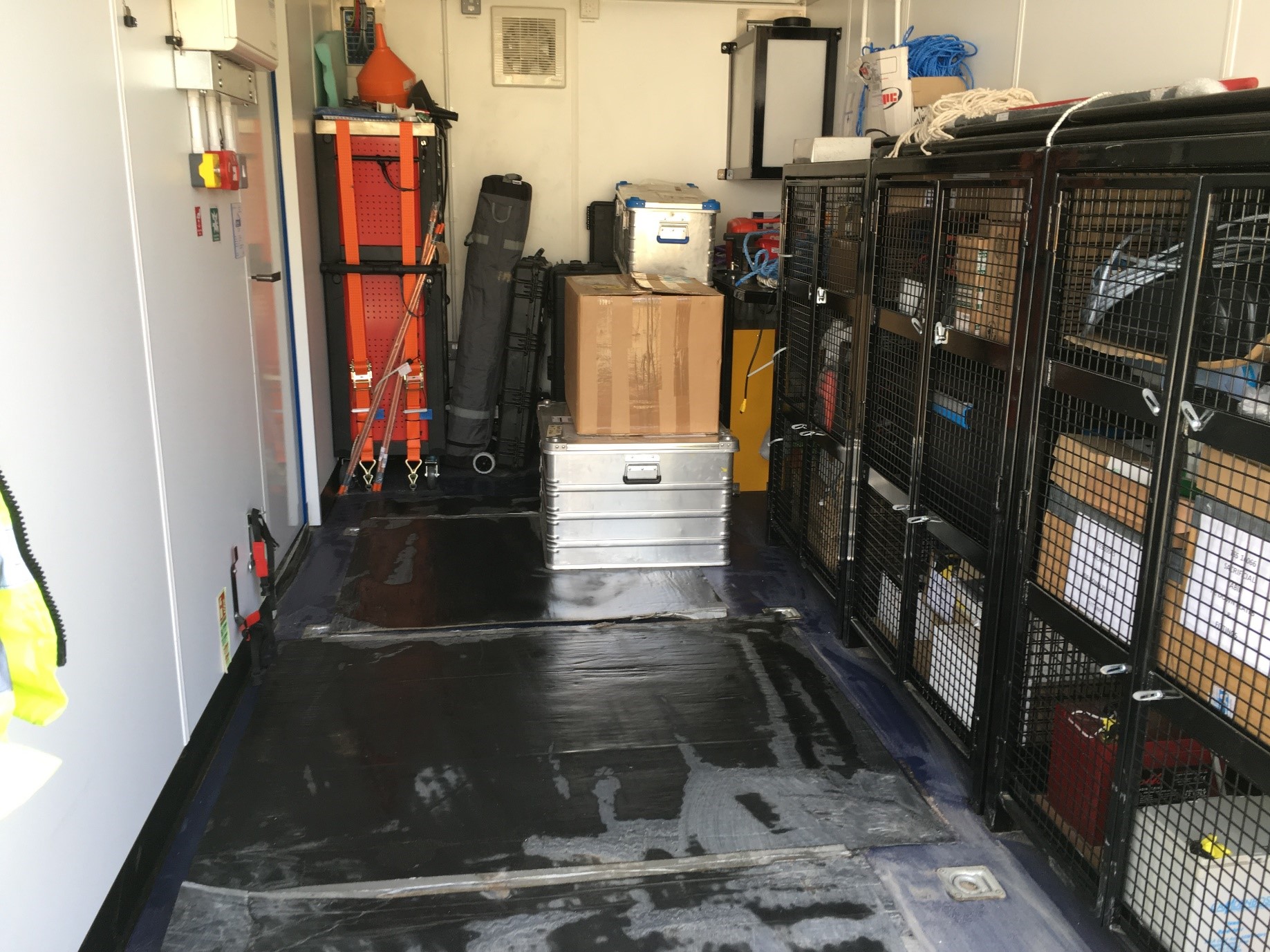 The Workshop contains a workbench, tools, storage for various items such as sensors, life jackets and spares. It is generally used for maintenance and repair activities. The USV is transport to site in this container. It may be powered either from a single phase, 50Hz, 240V supply (32A socket) or from its own diesel generator. Power may be taken from, or supplied to, the Operations Container.